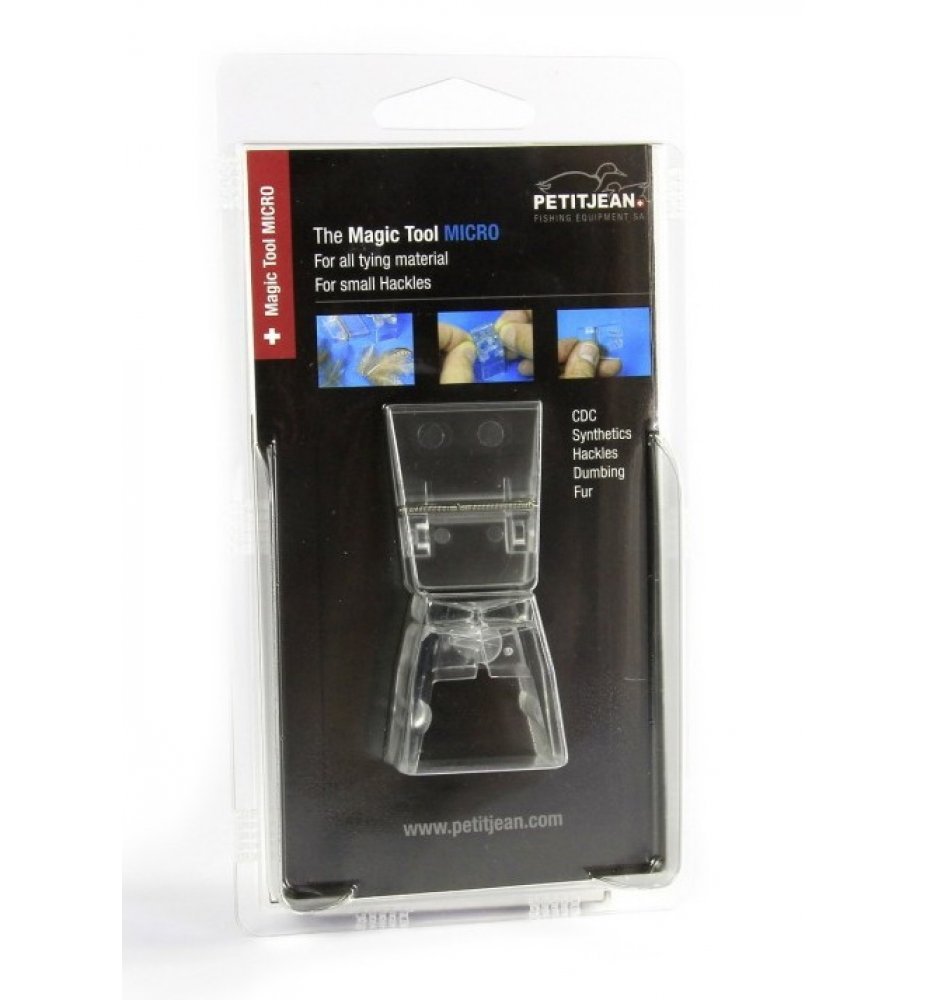 Marc Petitjean è considerato un genio della costruzione…ed ovviamente i suoi tool sono geniali, un po’ come il Magic Tool MICRO! E’ dotato di due tipi di pinze: una da tavolo e una pinza per le prendere i materiali.  Questo accessorio è stato studiato in modo specifico per riuscire a creare dei dubbing ad asola con le piume più piccole di CDC, pernice, beccaccia e molte altre. E’ anche indicato per creare piccoli toraci con dubbing misti di sintetico e piume.